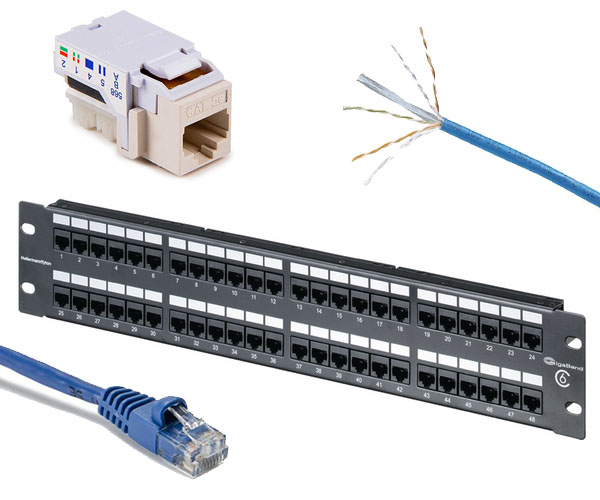 Patch panel de 24 puertas RJ45 y accesorios